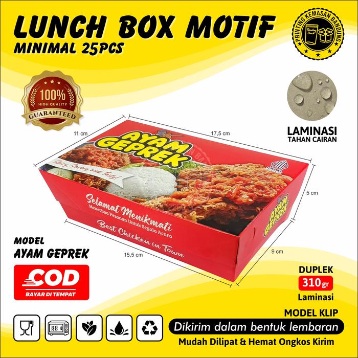 Lunch Box Size M Motif Full Colour Duplek 310gr Dus Ayam Geprek Nasi Goreng - AYAM GEPREK 25 pcs