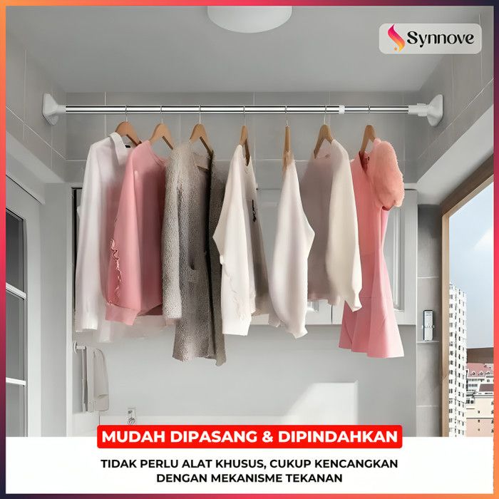 TERBARU Tiang Gantungan Baju Kamar Mandi Stainless Steel Teleskopik Gantungan Baju Tanpa Paku Multifungsi Tiang