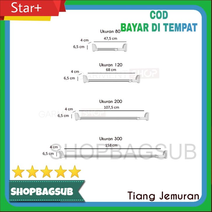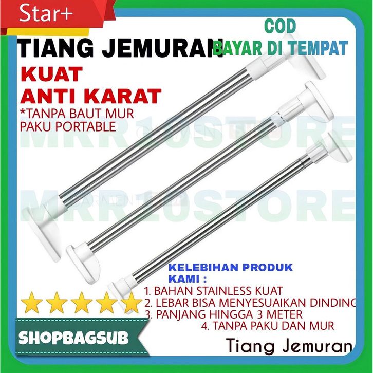 TERMURAH Tiang Gorden Fleksibel Jemuran Baju Gantungan Rak Dinding Tanpa Bor Paku Stainless Steel Lipat Kuat ihocc