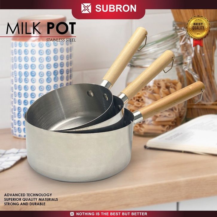 NEW SUBRON Panci susu Milk Pot Pegangan Kayu 14cm 16cm 18cm Stainless Steel Murah acemnh