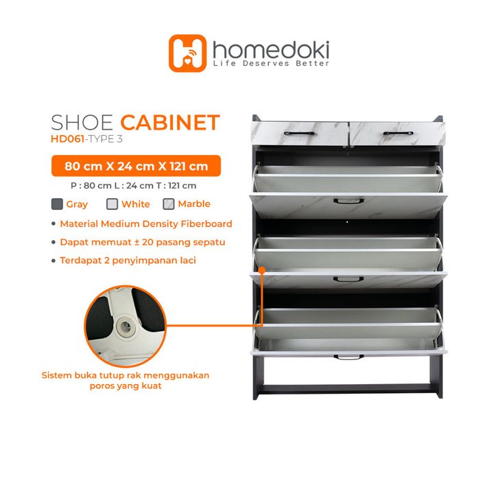 Homedoki Lemari Sepatu Kayu / Rak Sepatu / Shoes Kabinet Multifungsi / Lemari Kabinet Kayu Minimalis