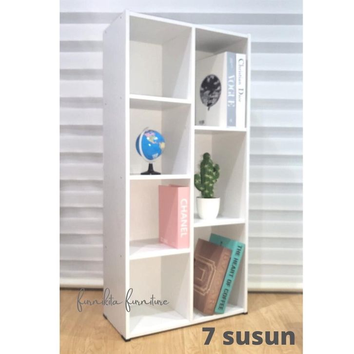 RAK BUKU SERBAGUNA 7 SUSUN LEMARI BUKU FULL PUTIH RAK TAS PAJANGAN