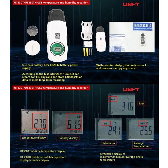 UNI-T USB Temperature Humidity Datalogger UT330TH Suhu Kelembapan