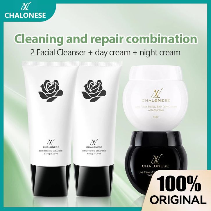 CHALONESE Paket Daily Skincare Facial Wash + Moisturizer—Day Cream / Night Cream Whitening BPOM Moisturizer Pelembab