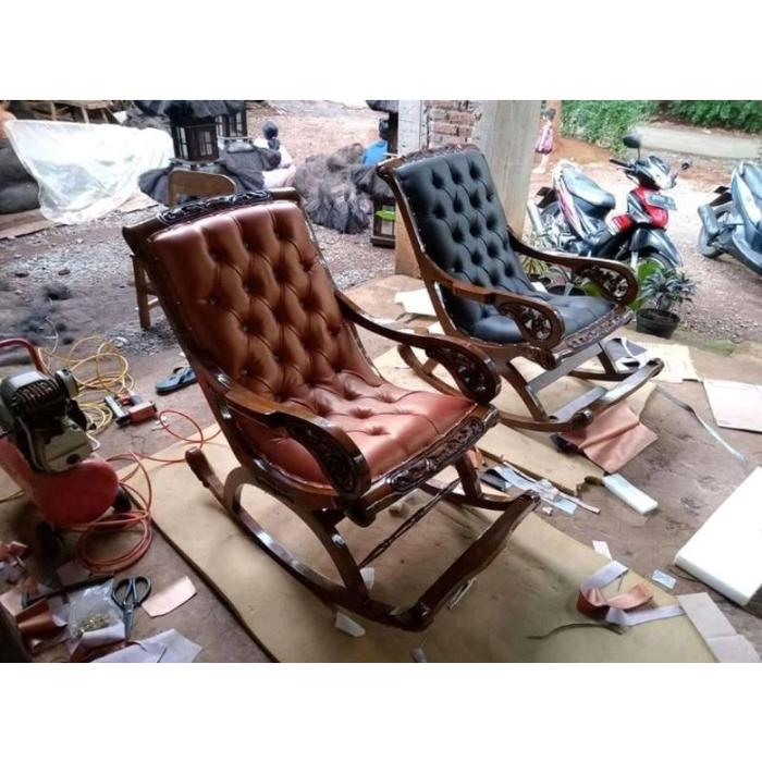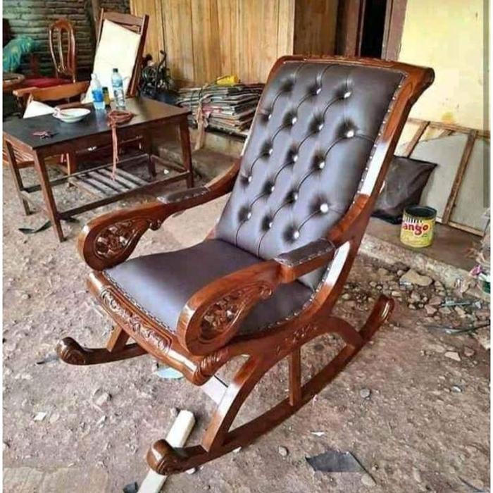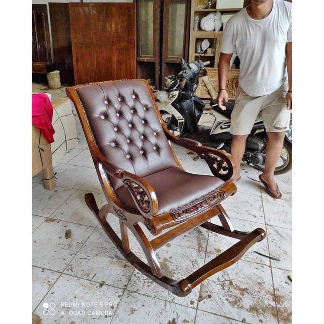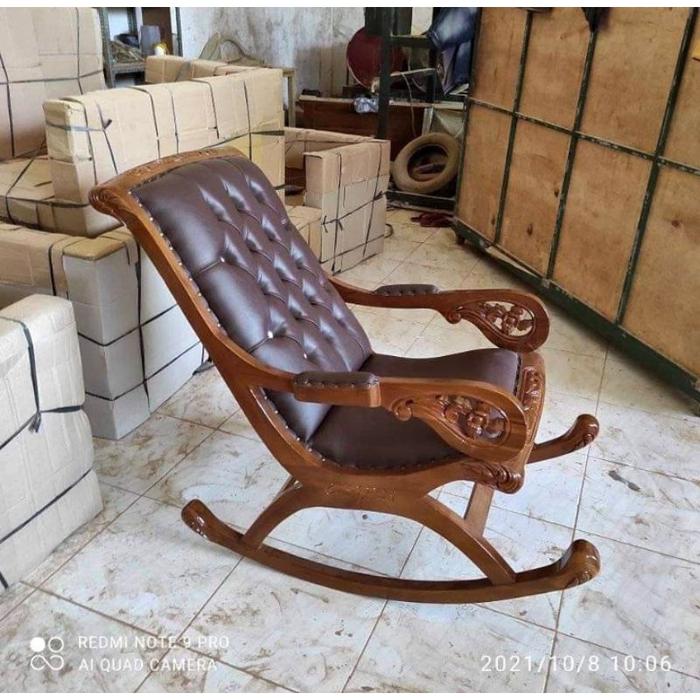Kursi goyang kayu jati dengan pijakan kaki furniture jepara