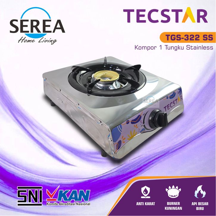 TECSTAR Kompor Gas 1 Tungku Stainless TGS-322SSKompor Gas 1 Tungku TECSTAR Stainless Anti Karat,SNI