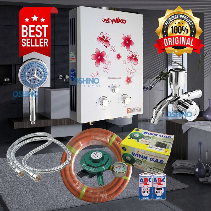 [] Paket Gas Niko Terbaru - Pemanas Air Warna Putih Lengkap dengan Set Stainless