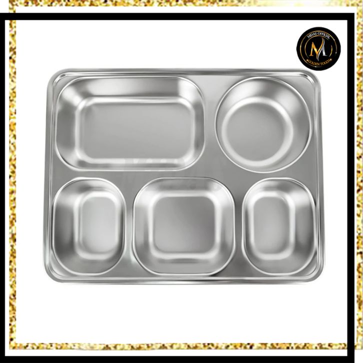 TERLAKU Piring Stainless Steel 5 Sekat Lengkap Dengan Tutup Food Tray/ Tempat Makan Berkualitas Praktis dan