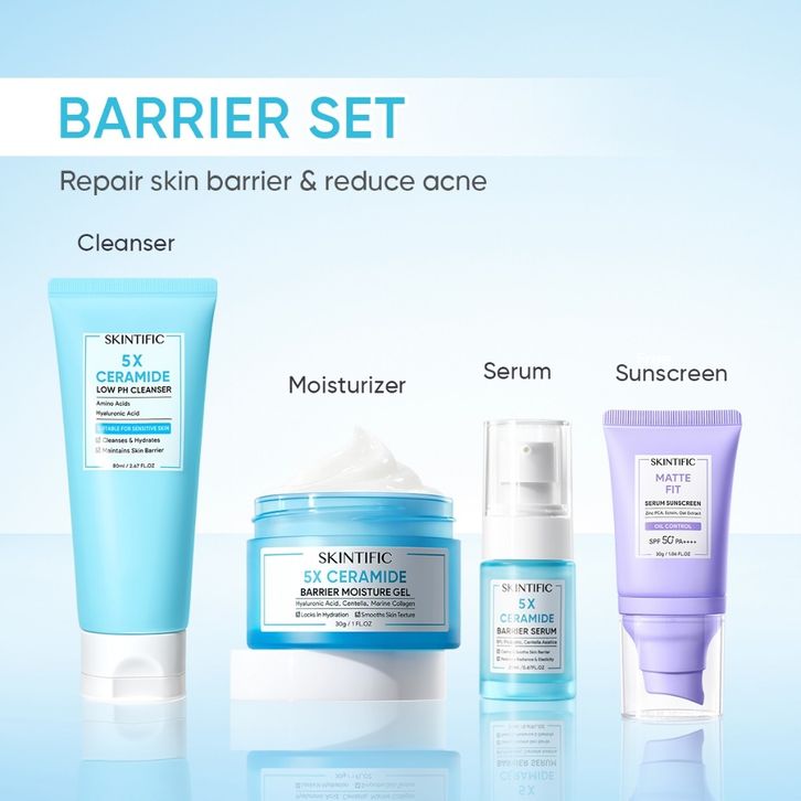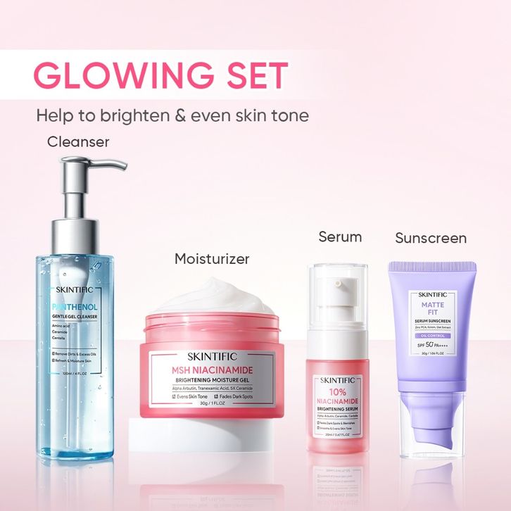 SKINTIFIC - Dewy Glow & Protection 4Pcs Set | Serum Wajah Moisturizer Gel Toner Clay Mask Day Night Cream Barrier Brig