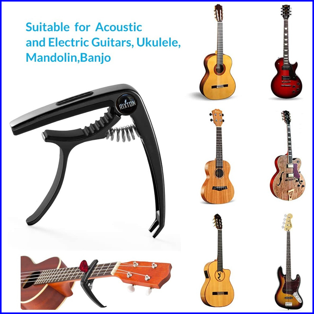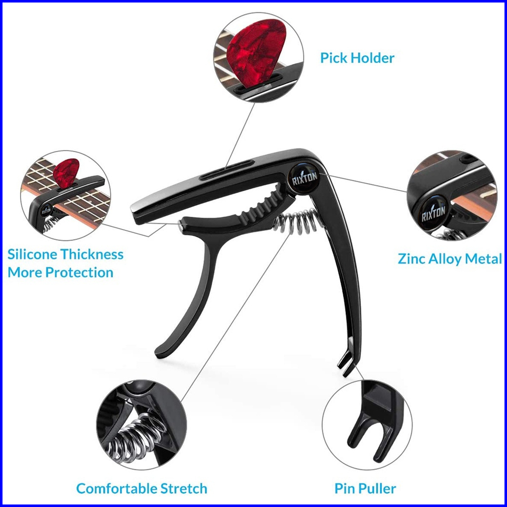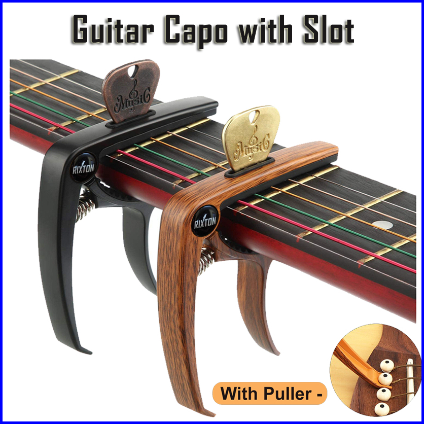 Rixton Guitar Capo With Pick Slot Metal Wood Grain Guitar Capo Easy Change Clamp Key Acoustic