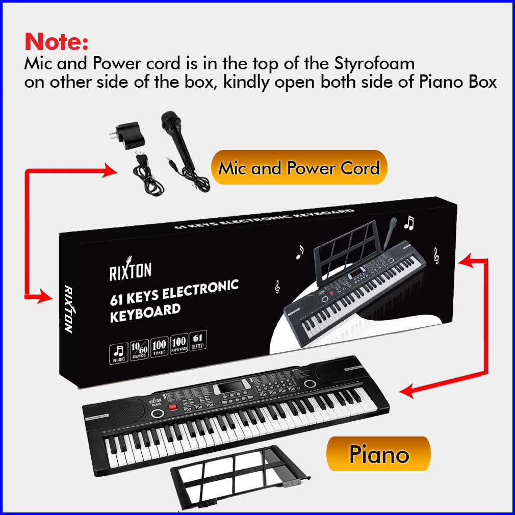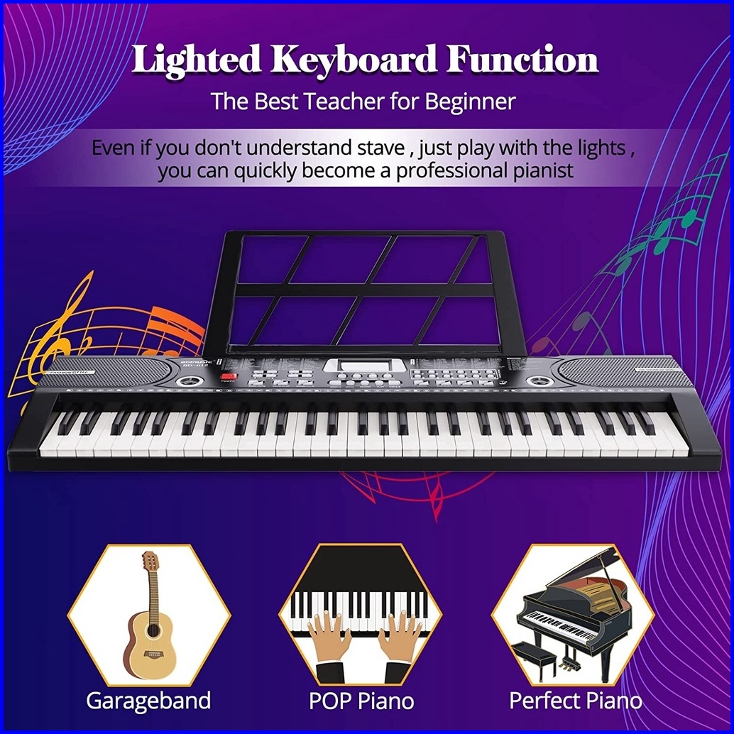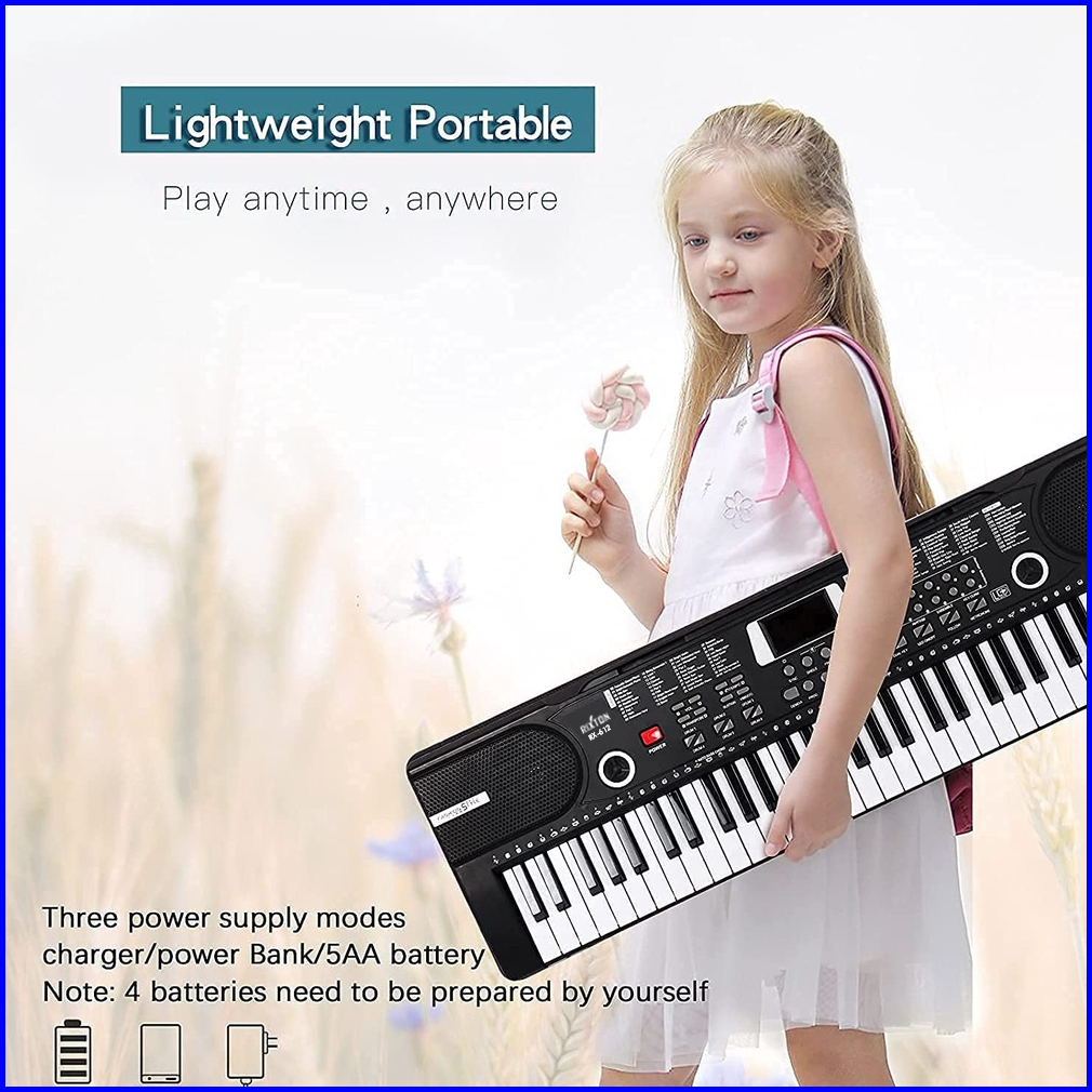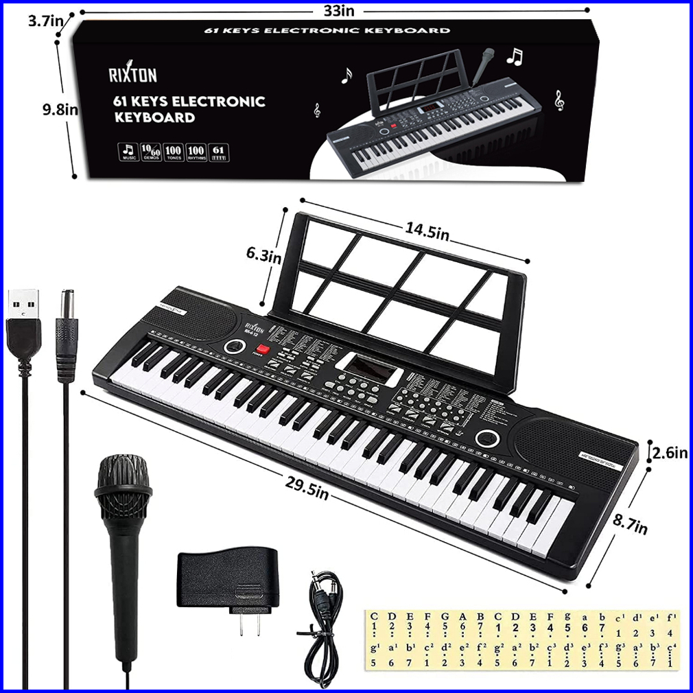 Rixton 61 Keys Digital Electric Piano Keyboard Portable Electronic Keyboard For Beginners