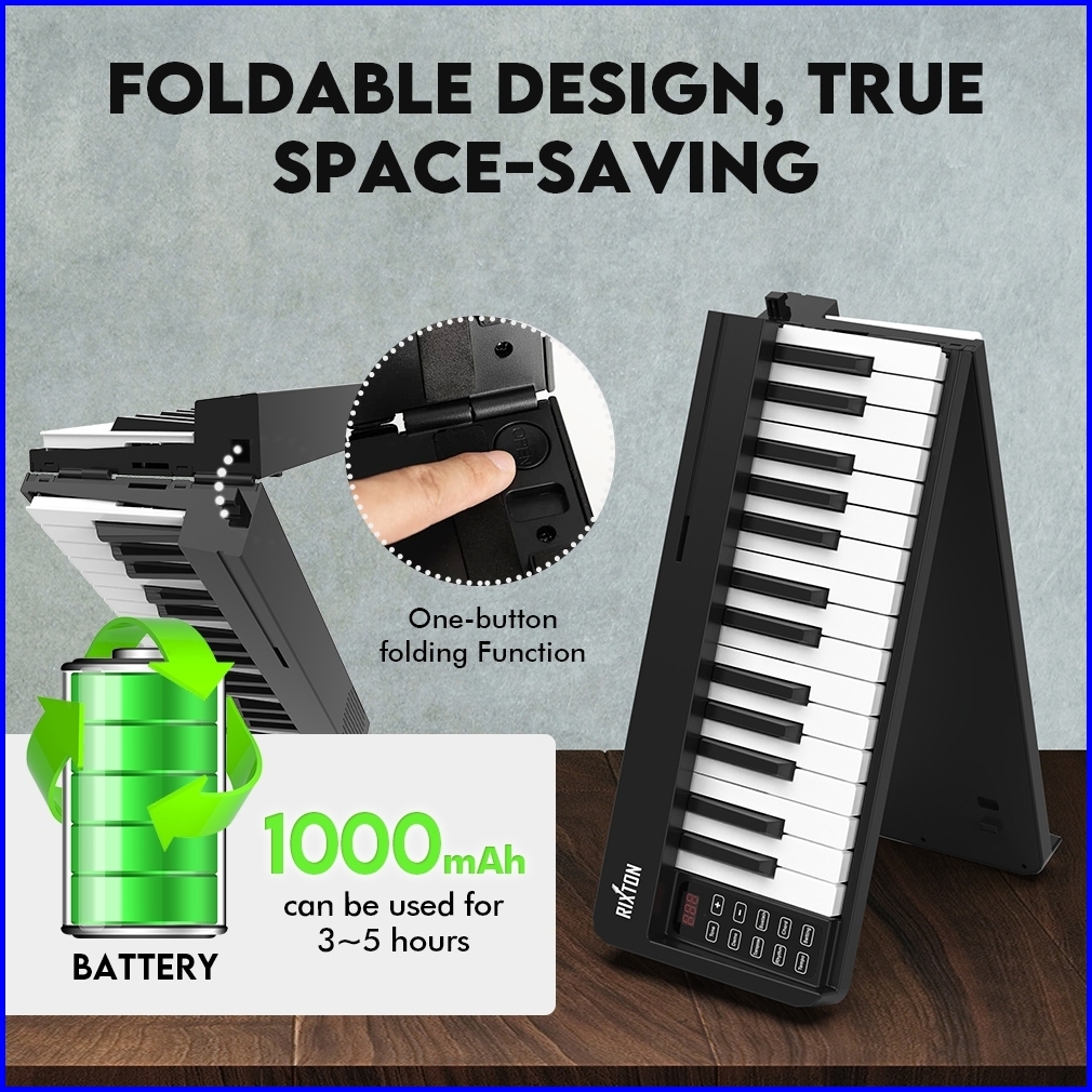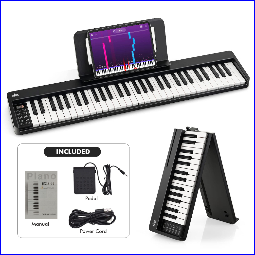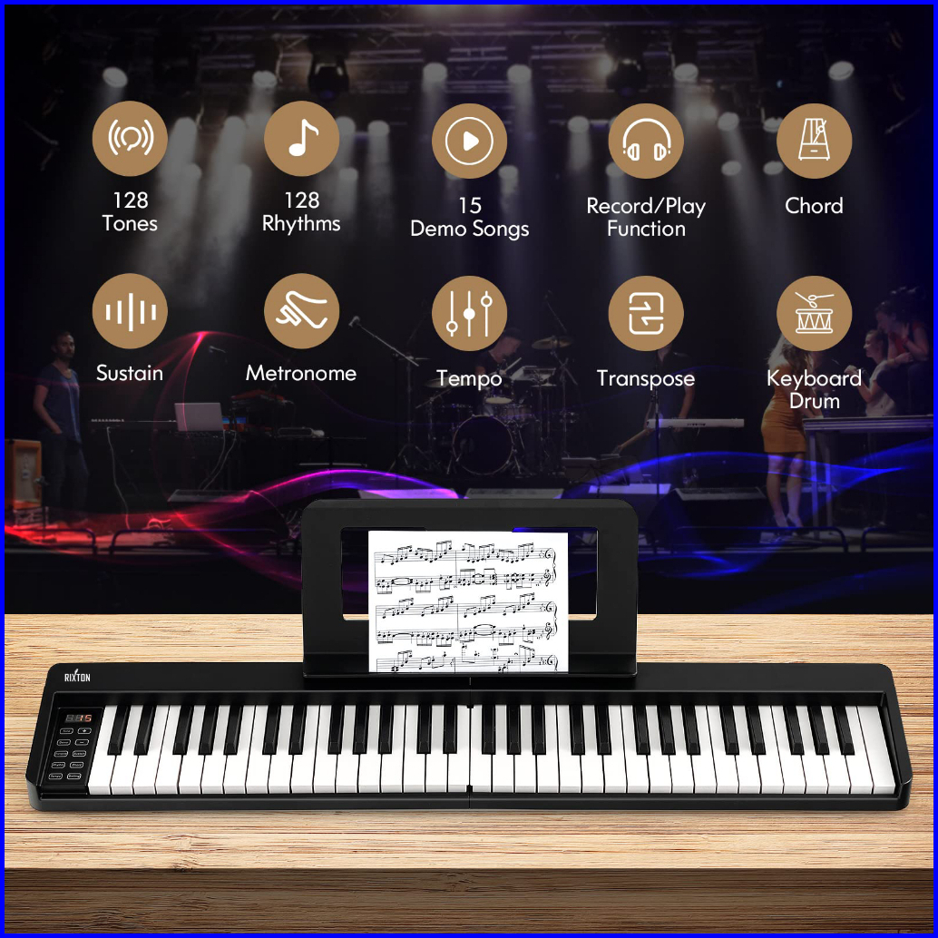 Rixton Foldable 61 Keys Keyboard Folding Piano Keyboard Musik With Full Size Semi Weighted Keys Portable Elektrik Lipat