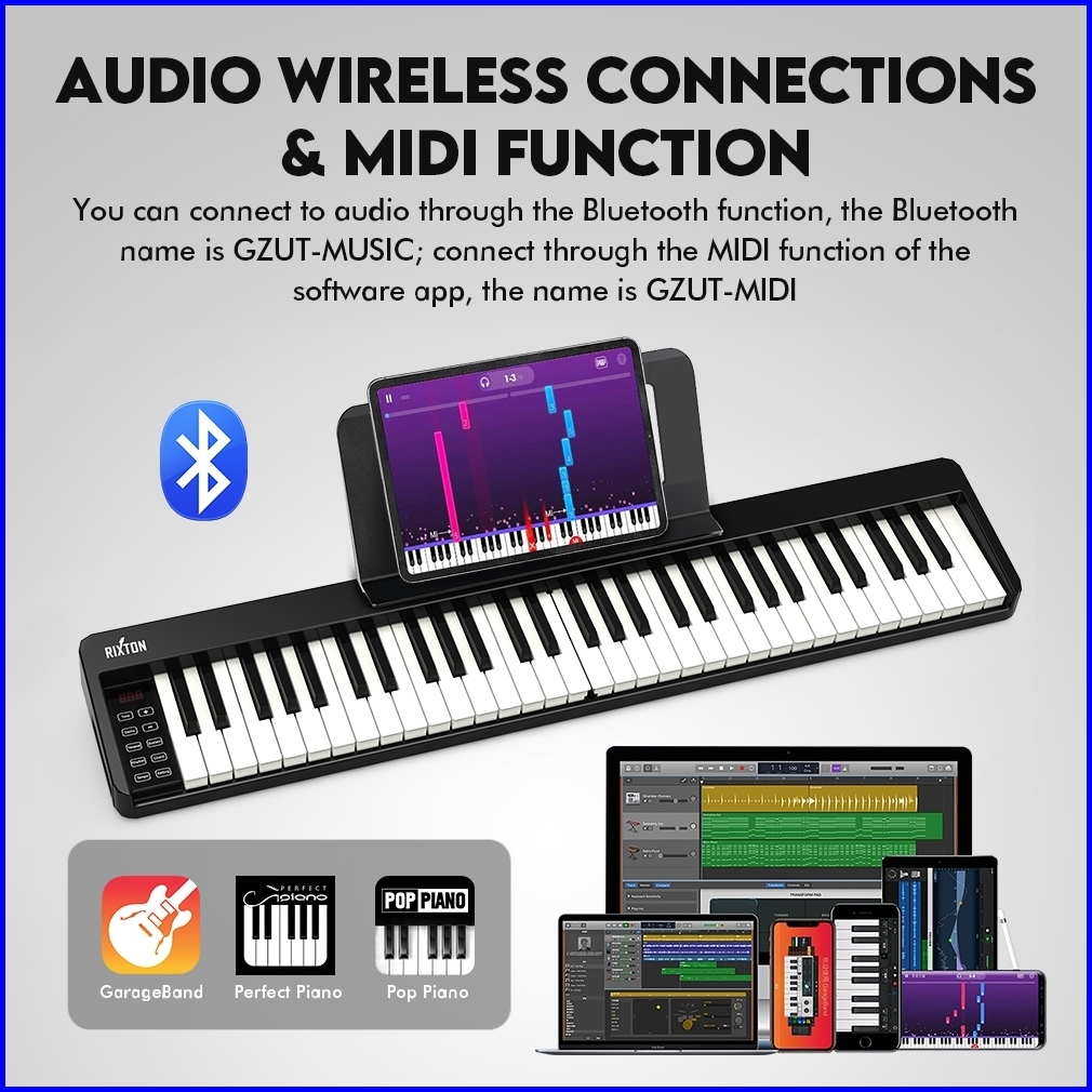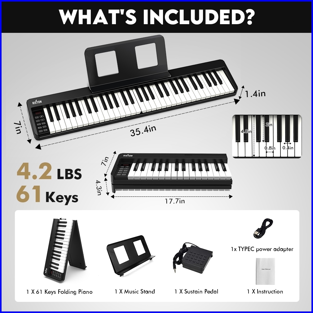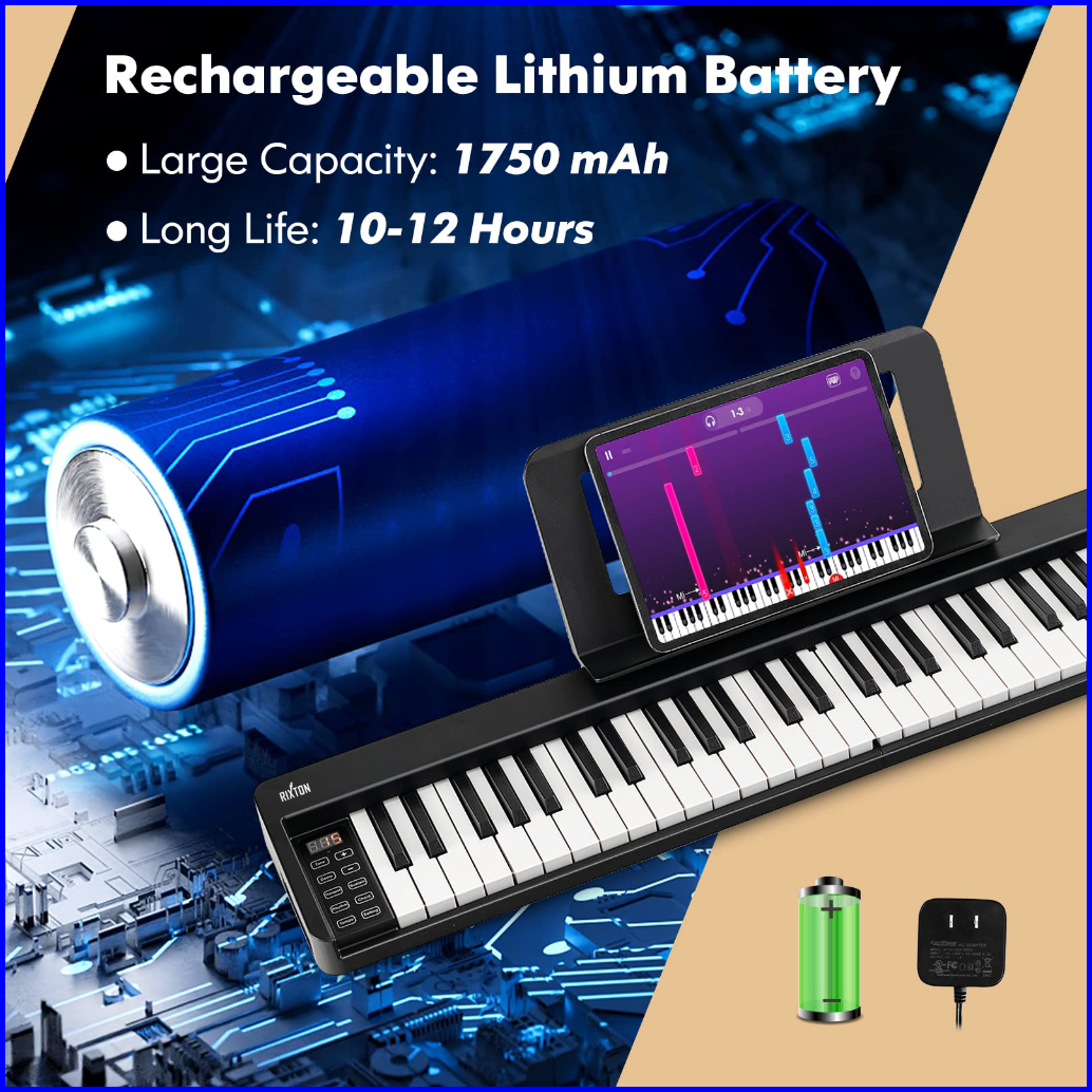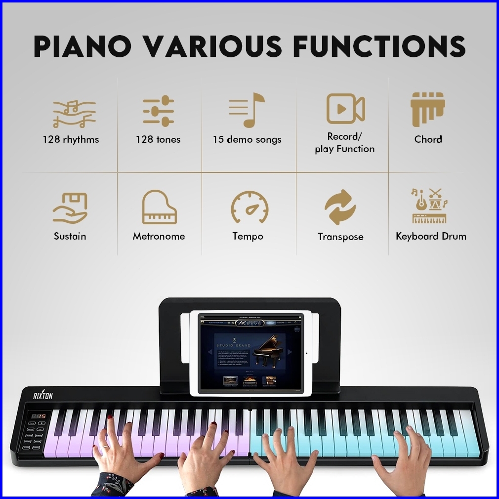 Rixton Foldable 61 Keys Keyboard Folding Piano Keyboard Musik With Full Size Semi Weighted Keys Portable Elektrik Lipat