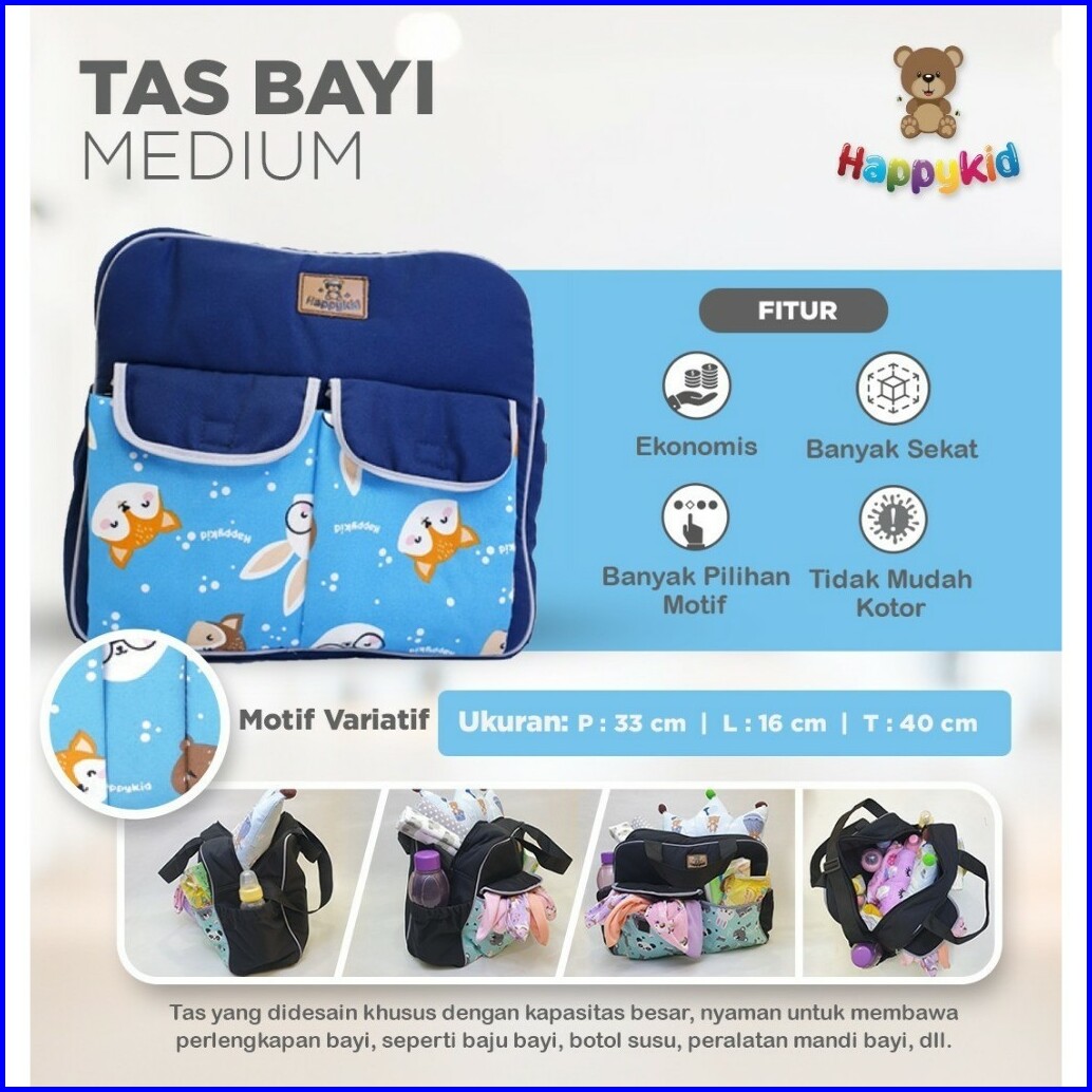 Happykid Tas Bayi Besar Sedang Kecil Double Saku Tas Perlengkapan Bayi Baby Diaper Bag