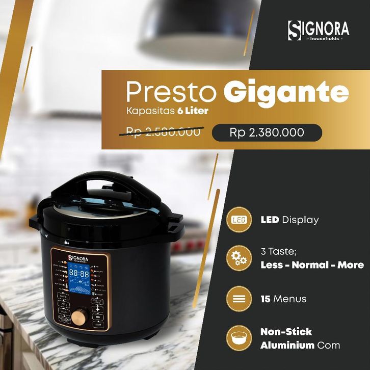 SIGNORA | Presto Listrik Gigante 6 Liter High Pressure Cooking [AGEN RESMI JAKARTA]