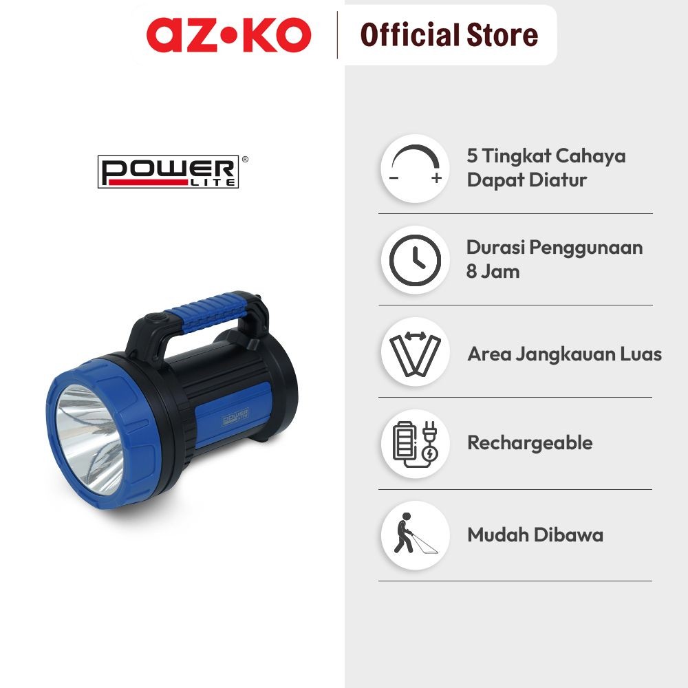 Senter Led Super Terang Azko Powerlite Rechargeable 7w Biru Hitam 4000 Mah Spotlight & Lentera Portable