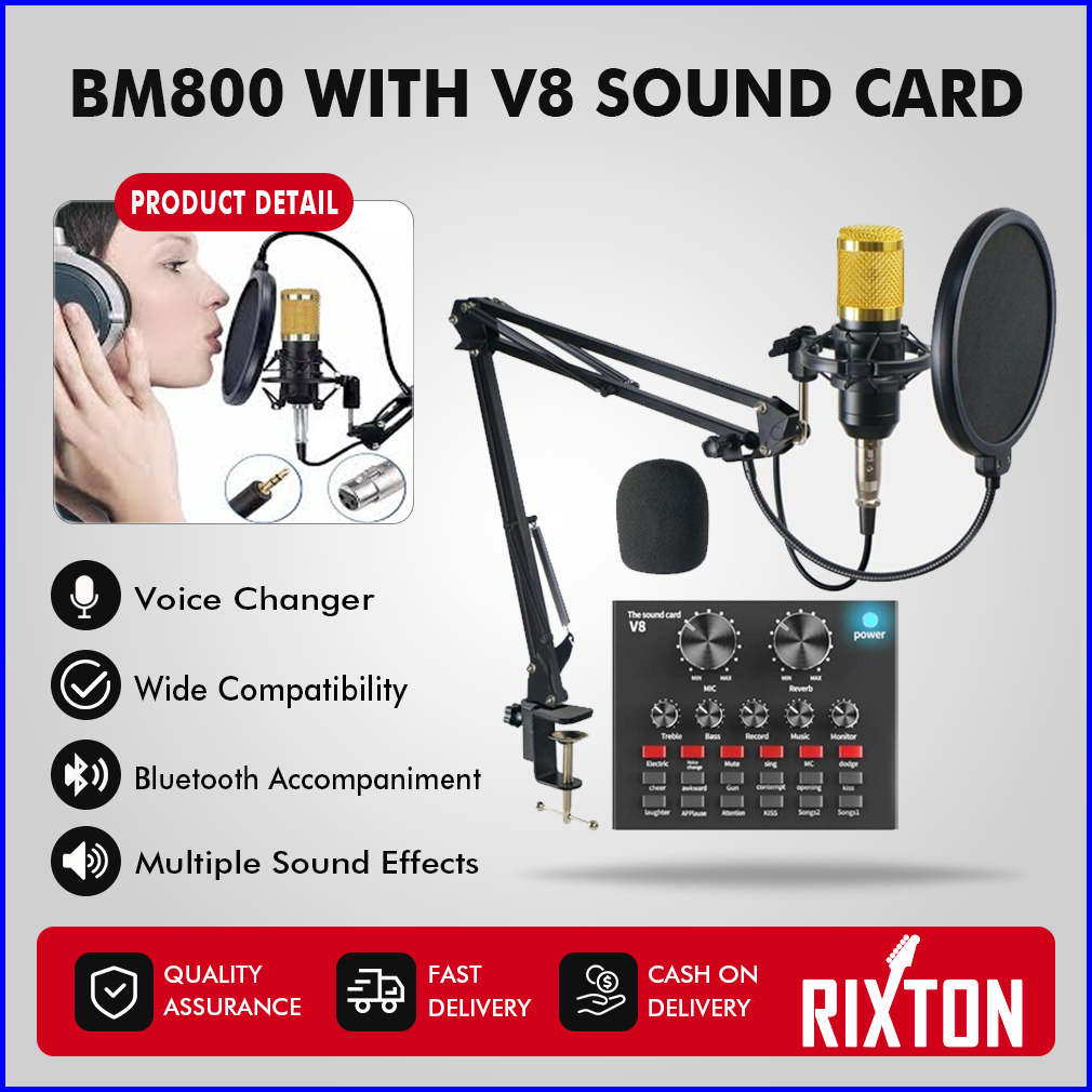 Rixton Bm-800 Microphone Full Set Condenser V8 Soundcard Bm-800 Microphone Pop Filter