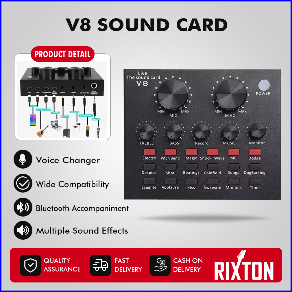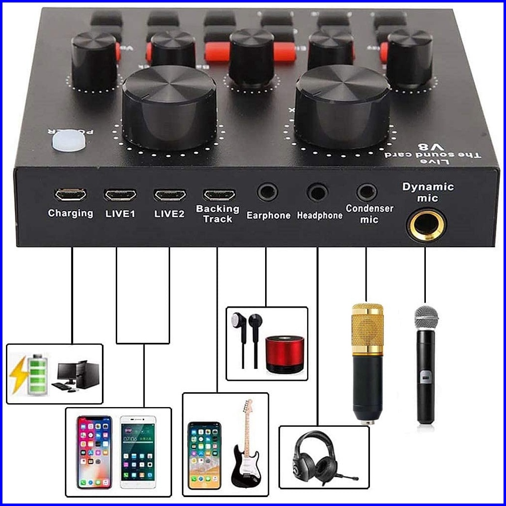 Rixton V8 V8s F998 Audio Mixer External Sound Cards Headset Microphone Live Sound Card Recording