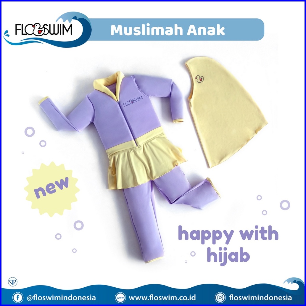 Baju Renang Anak Apung Hijab Muslimah Goswim Floating Swimsuit M - Xl