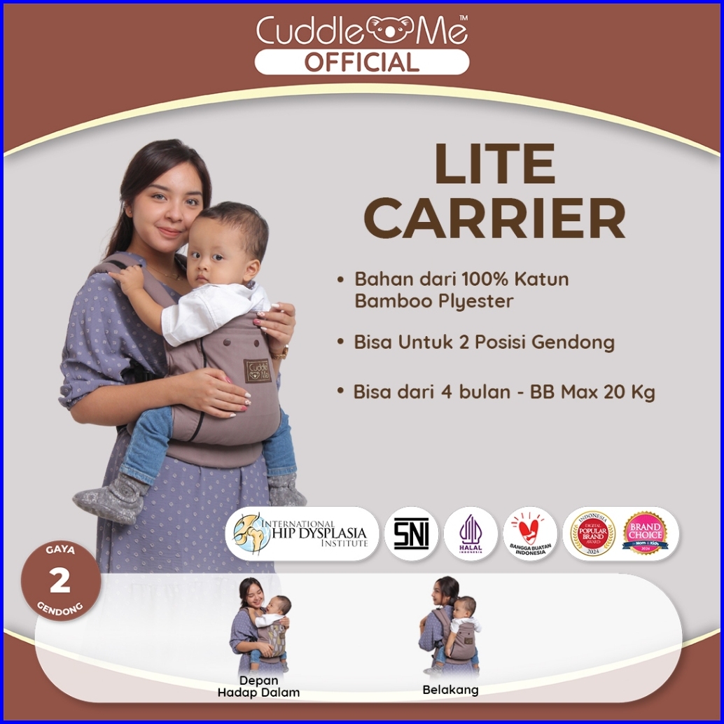 Gendongan Bayi 4 Bulan - 3 Th M Shape 2 Posisi Depan Belakang Cuddleme Lite Carrier Solid