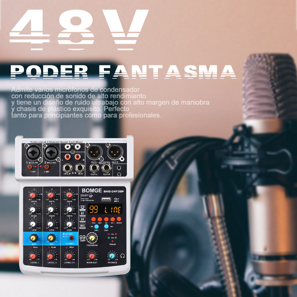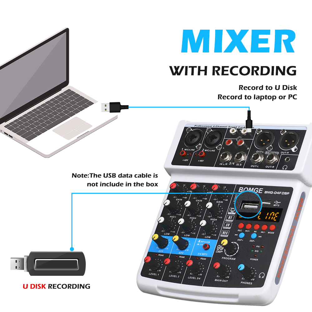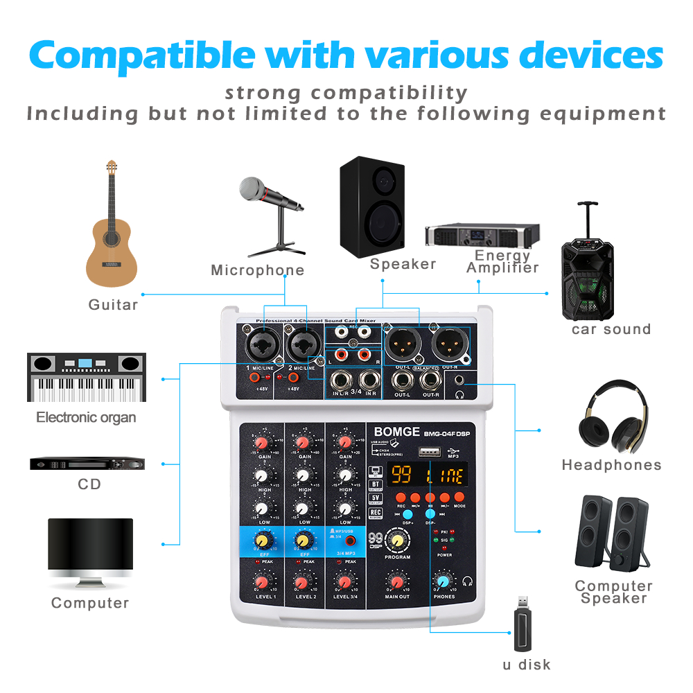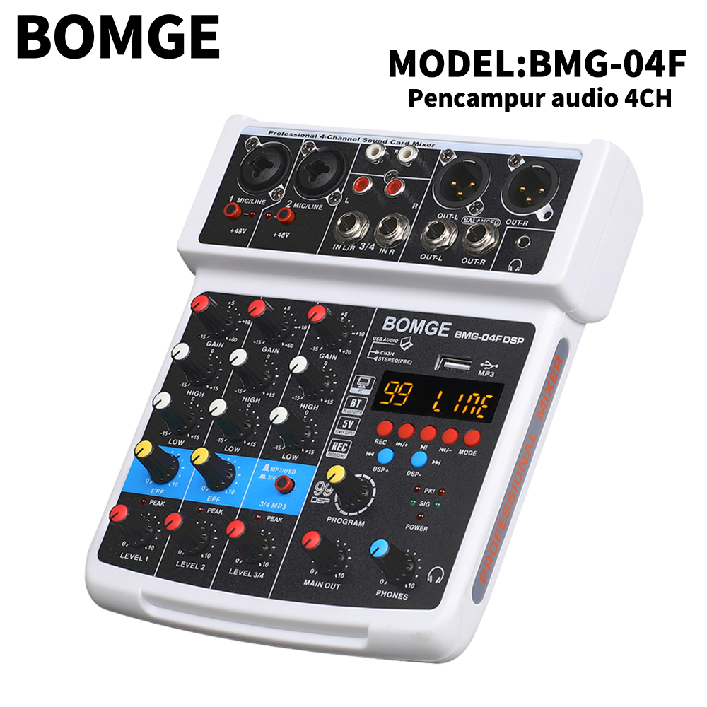 NEW ORIGINAL BOMGE BMG-04FW 4 Channel mini DJ Audio Sound Mixer Interface 99 DSP With MP3 BMG 04FW 4 04 FW A