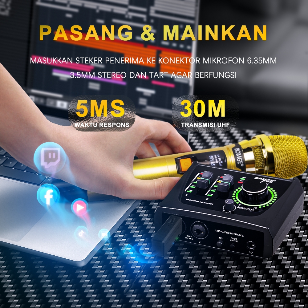 NEW ORIGINAL BOMGE 106 UHF Professional Wireless Microphone, Dual Handheld Cordless Dynamic Rechargeable 106