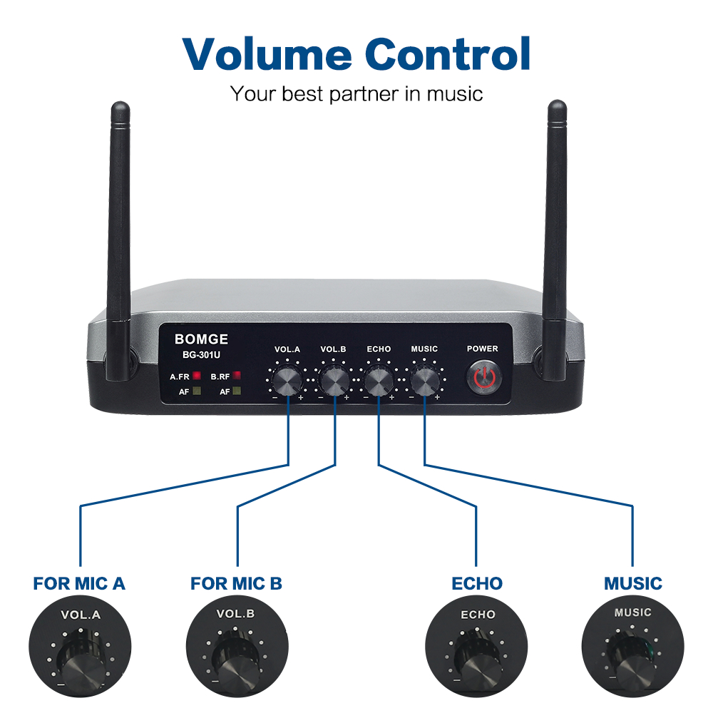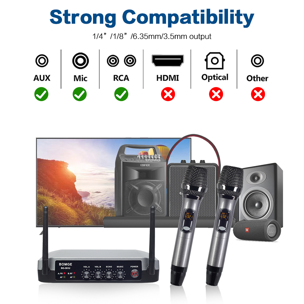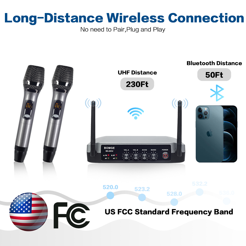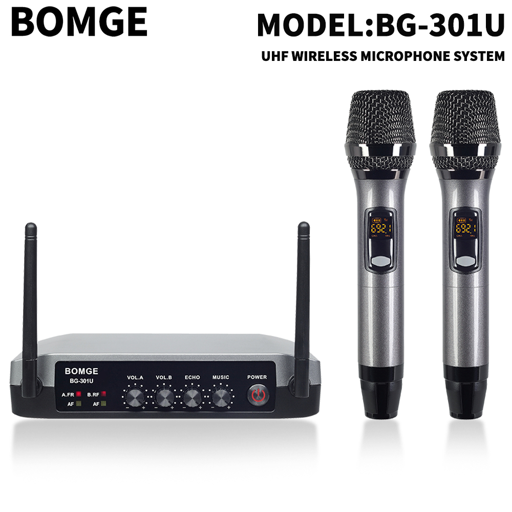 NEW ORIGINAL BOMGE 301U Mikrofon Nirkabel Profesional Dual Channel UHF Bluetooth 50 Untuk Karaoke TV Bluetooth 301 U