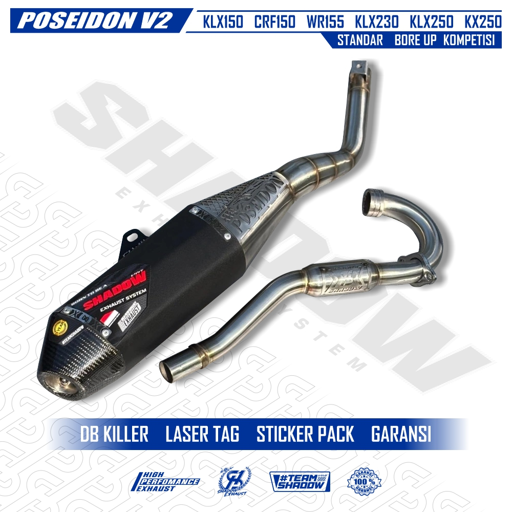 Knalpot CRF150 KLX150 WR155 KLX TIGER KLX 230 KLX250 Type Poseidon v2 BLACK Shadow Exhaust