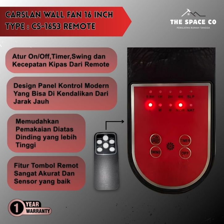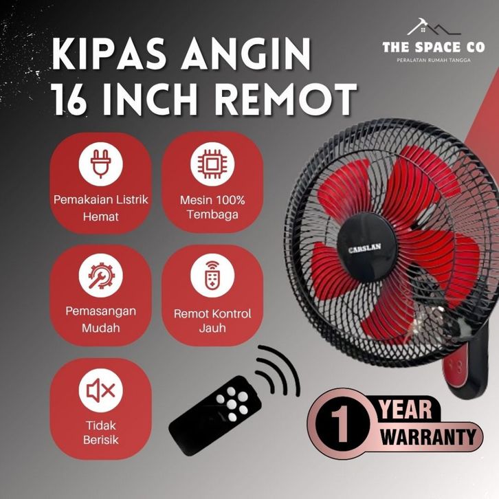Kipas Dinding Remot 16 Inch Jumbo 5 Baling Hemat Daya Tidak Berisik / Senyap Bergaransi Carslan