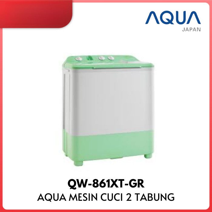 AQUA Mesin Cuci 2 Tabung 8kg Hijab Mode QW-861XT-GR - Air Dry Spin Lid, Soak Function, Water Selector