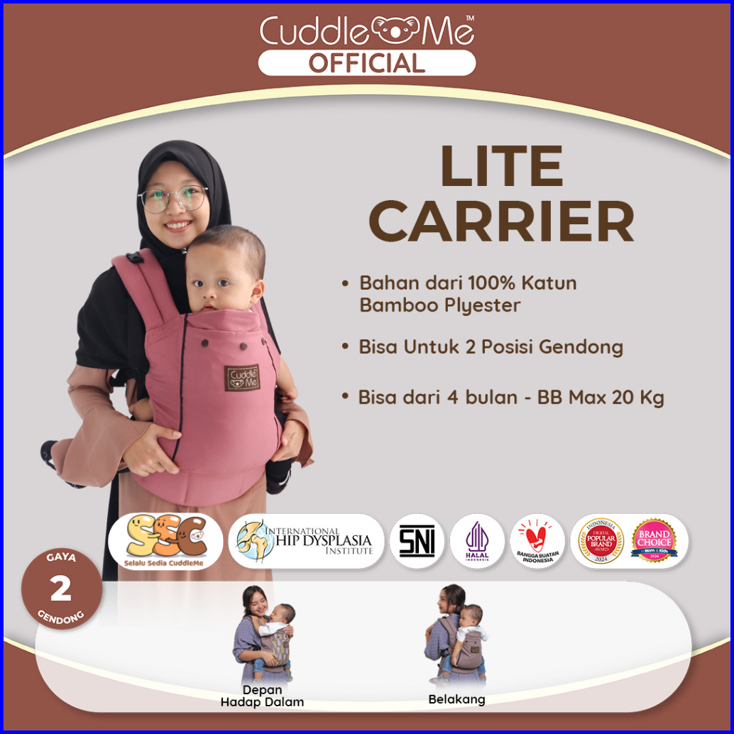 Gendongan Baby Carrier Depan Belakang Bayi 4 Bulan - 2 Tahun Lite Carrier Solid M Shape Cuddleme