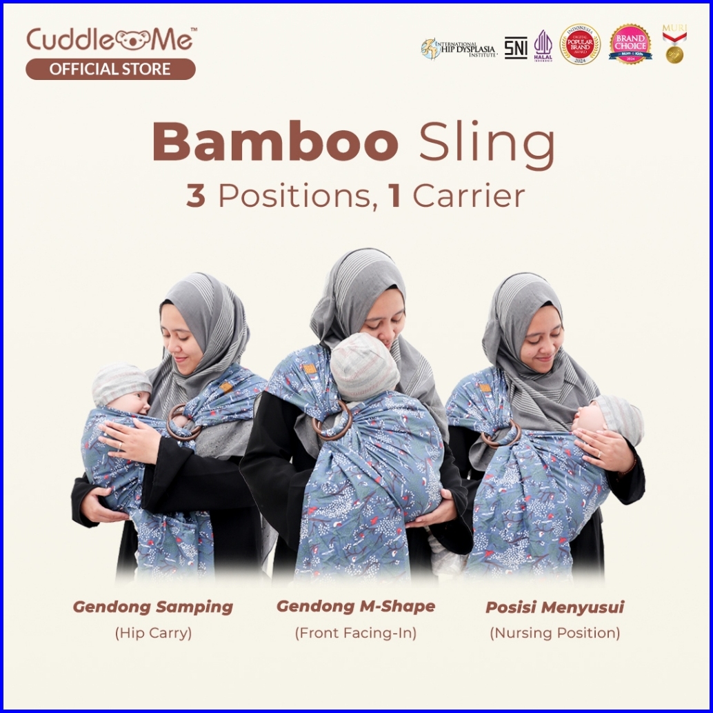 Gendongan Kain Jarik Bamboo Ring Sling Motif Cuddleme M Shape Untuk Bayi Newborn - 2 Tahun