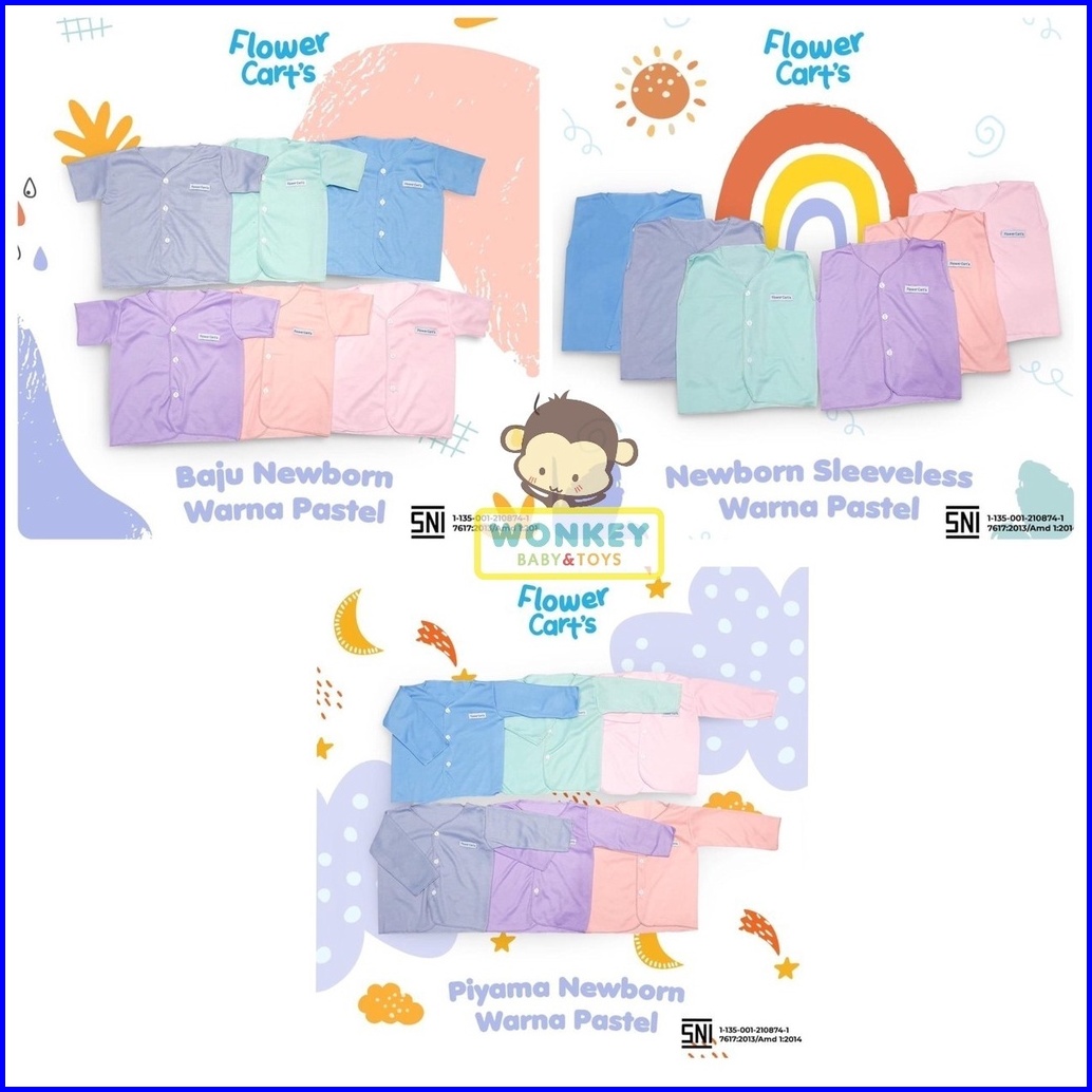 Baju Bayi Newborn Panjang Pendek Kutung Buntung 0-6 Bulan Flower Cart S