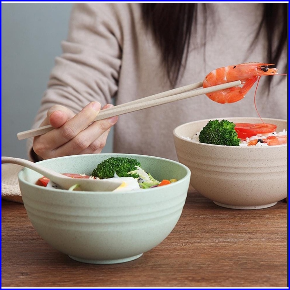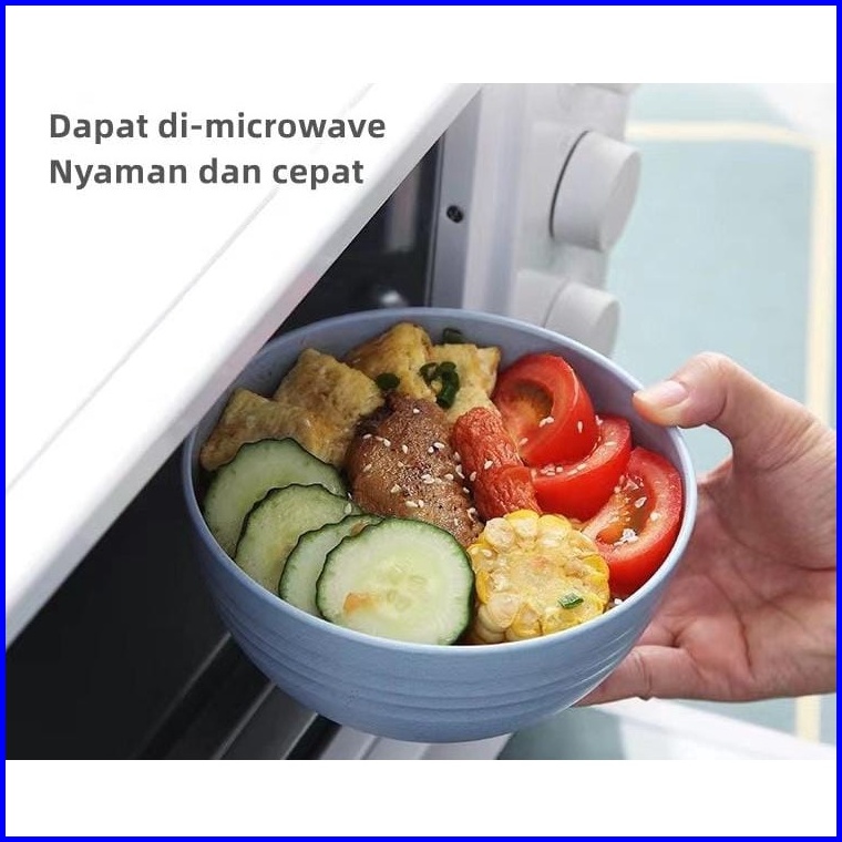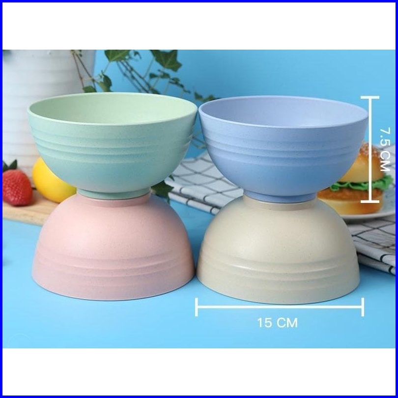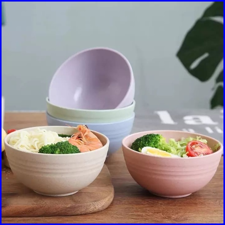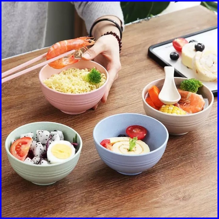 Mangkok Wheat Straw Mangkuk Makan Plastik Piring Sendok Garpu Alat Dapur Peralatan Makan Bowl Warna-warni Mangkuk Kuah B
