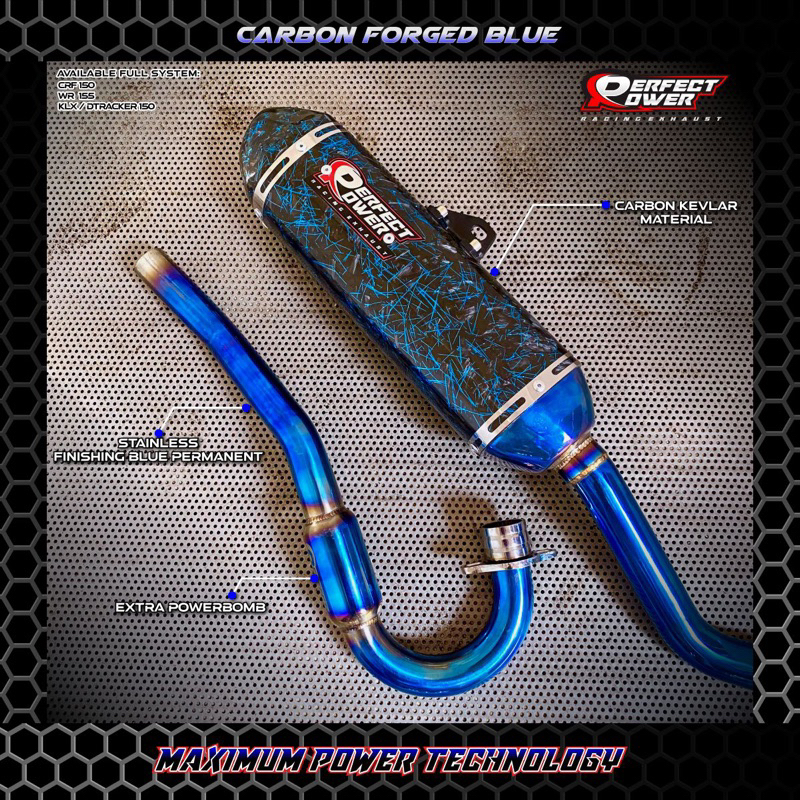 KNALPOT KLX150 CRF150 WR155 CARBON FORGED BLUE PERFECT POWER ORIGINAL
