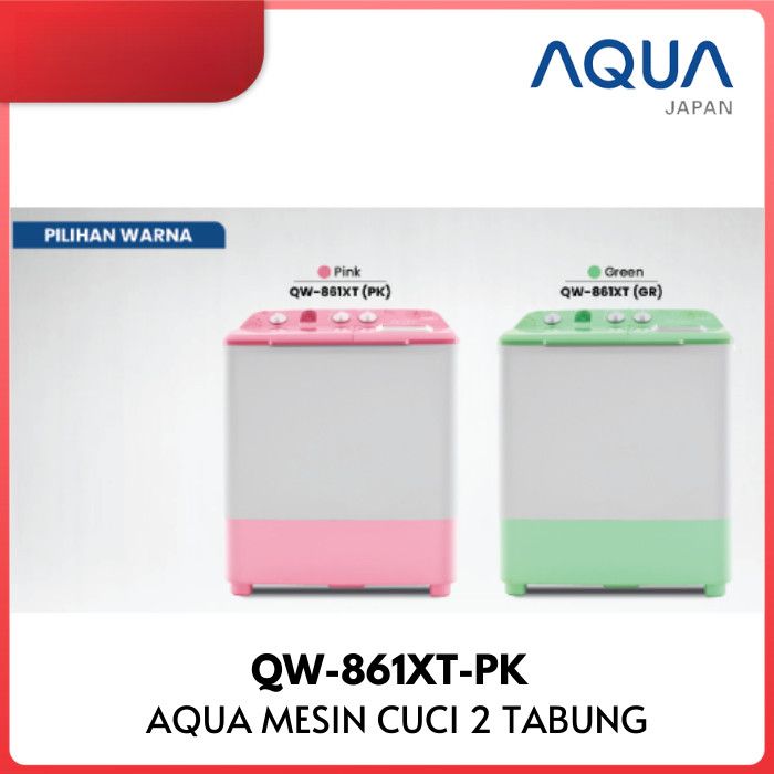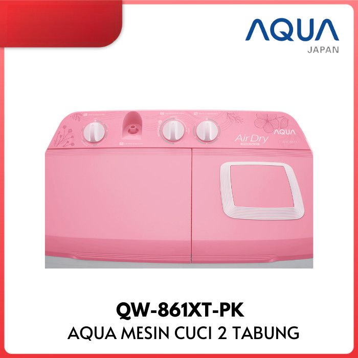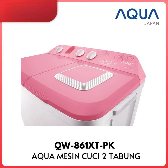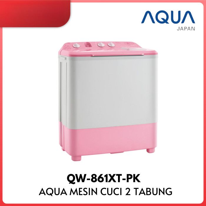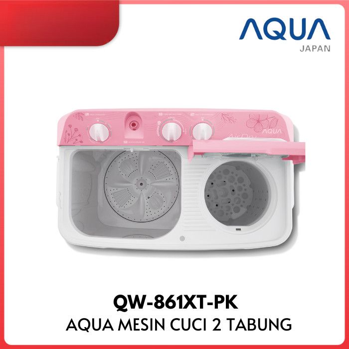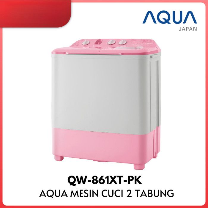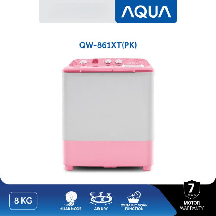 AQUA Mesin Cuci 2 Tabung 8kg Hijab Mode QW-861XT-PK - Air Dry Spin Lid, Soak Function, Water Selector