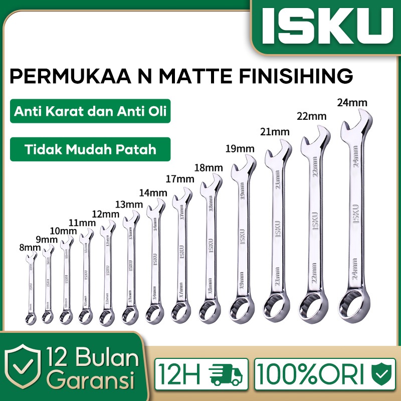 ISKU KUNCI RING PAS SET WRENCH SPANNER 8MM-24MM BAHAN KUAT ANTI KARAT ALAT PERKAKAS