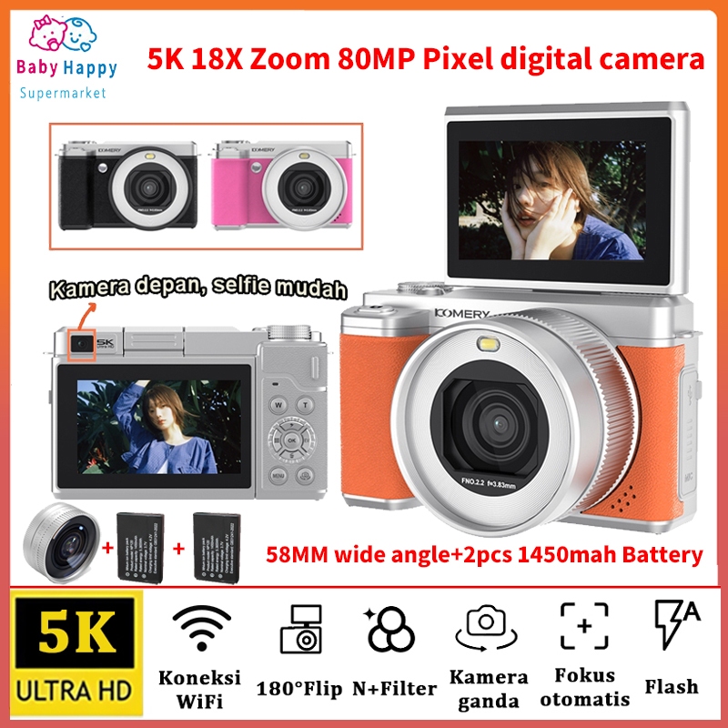 TEEKA 64GB 18X 80MP Kamera Digital 5K Vlogging Dengan Dukungan Selfie Koneksi WIFI untuk Hadiah Pemula