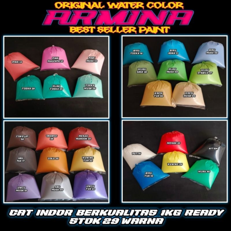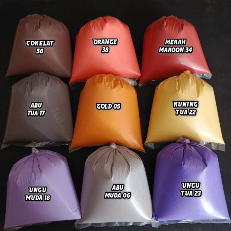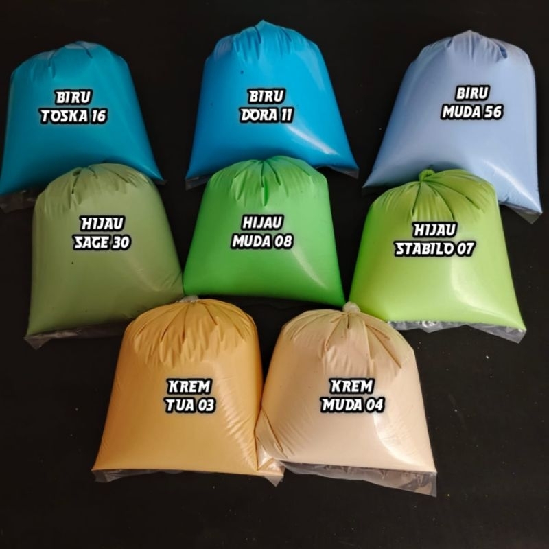 Hijau Toska 25, Hitam, Biru 10, Kuning 24, Abu Muda 06, Hiaju Muda 08, Hijau 40, Coklat 58, Tosk Pastel 26, Pink Pastel 13