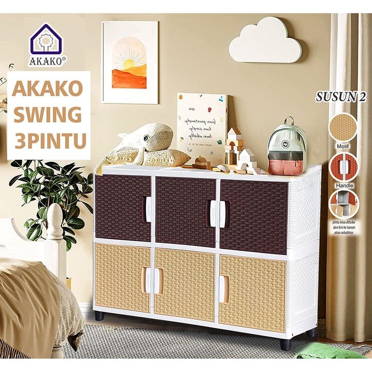 LEMARI PAKAIAN PLASTIK AKAKO SWING 3 PINTU 6 PINTU 9 PINTU ROTAN MURAH KUAT
