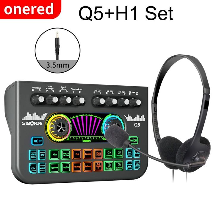 Onered Q5 Soundcard Original Paket Lengkap Mixer Bluetooth sound card for Streaming Langsung Siap .