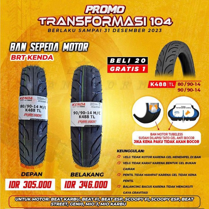 Ban BRT Kenda Ring 14 70/90-14 80/90-14 90/90-14 Ban Tubles Anti Bocor