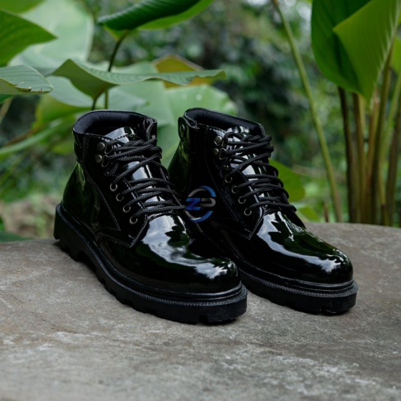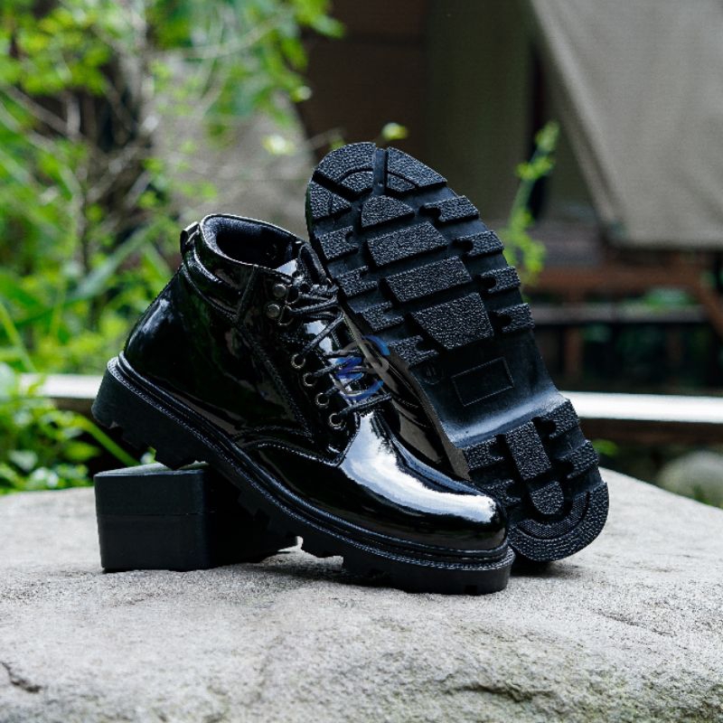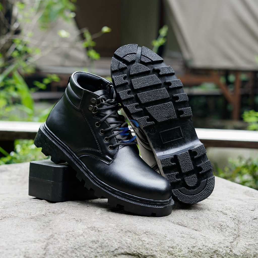 SEPATU PDH PRIA Sol Radial tali rel seleting polri tni polisi security satpam sepatu dinas harian intansi hitam doff kilap