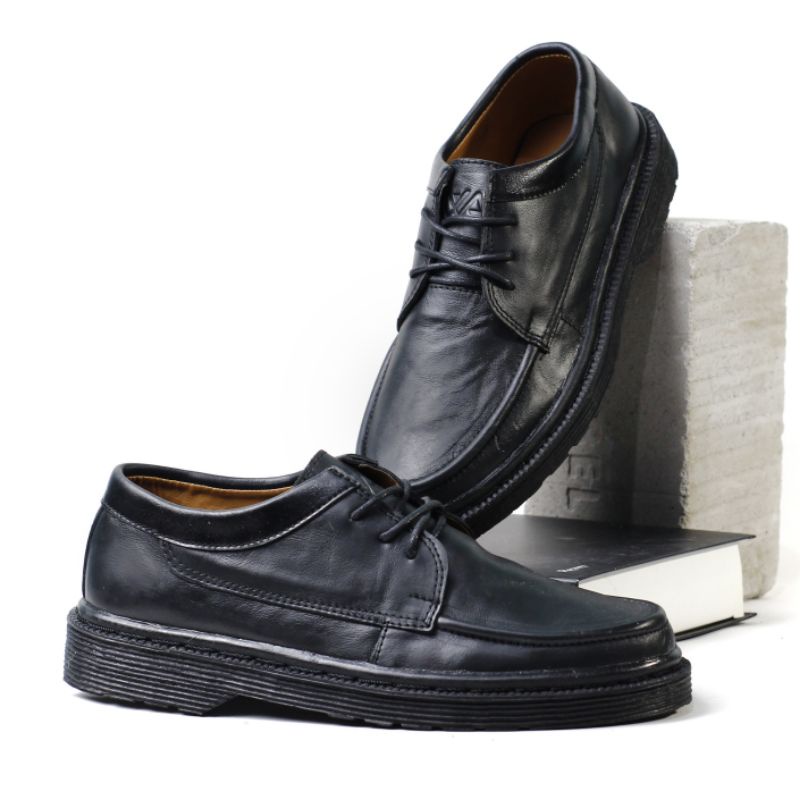 Warka - Harish Sepatu Formal Pantofel Pria Casual Kulit Asli - Hitam