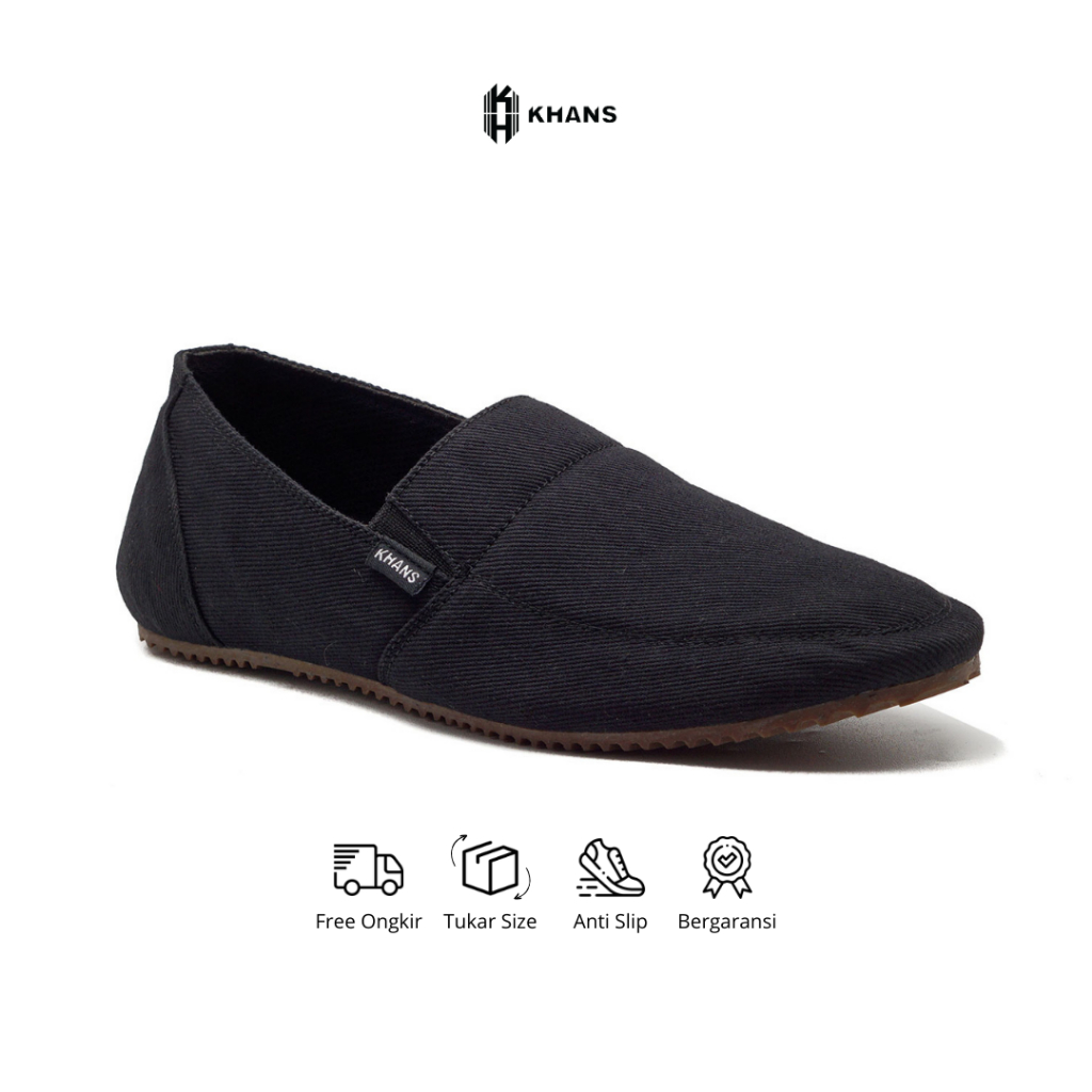 KHANS - Kante Black Sepatu Slip On Formal Casual Pria Wanita Kulit Kerja Resmi Kuliah Kondangan