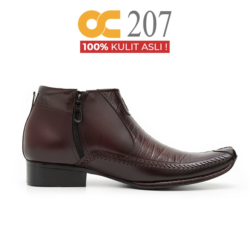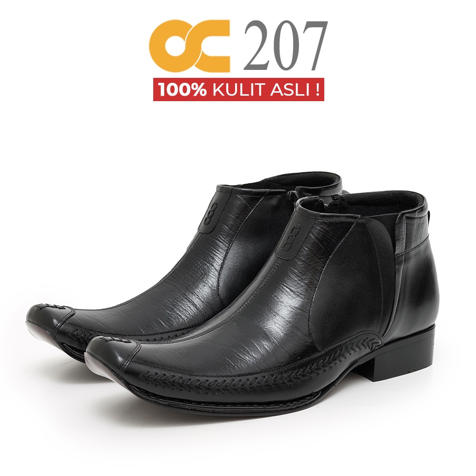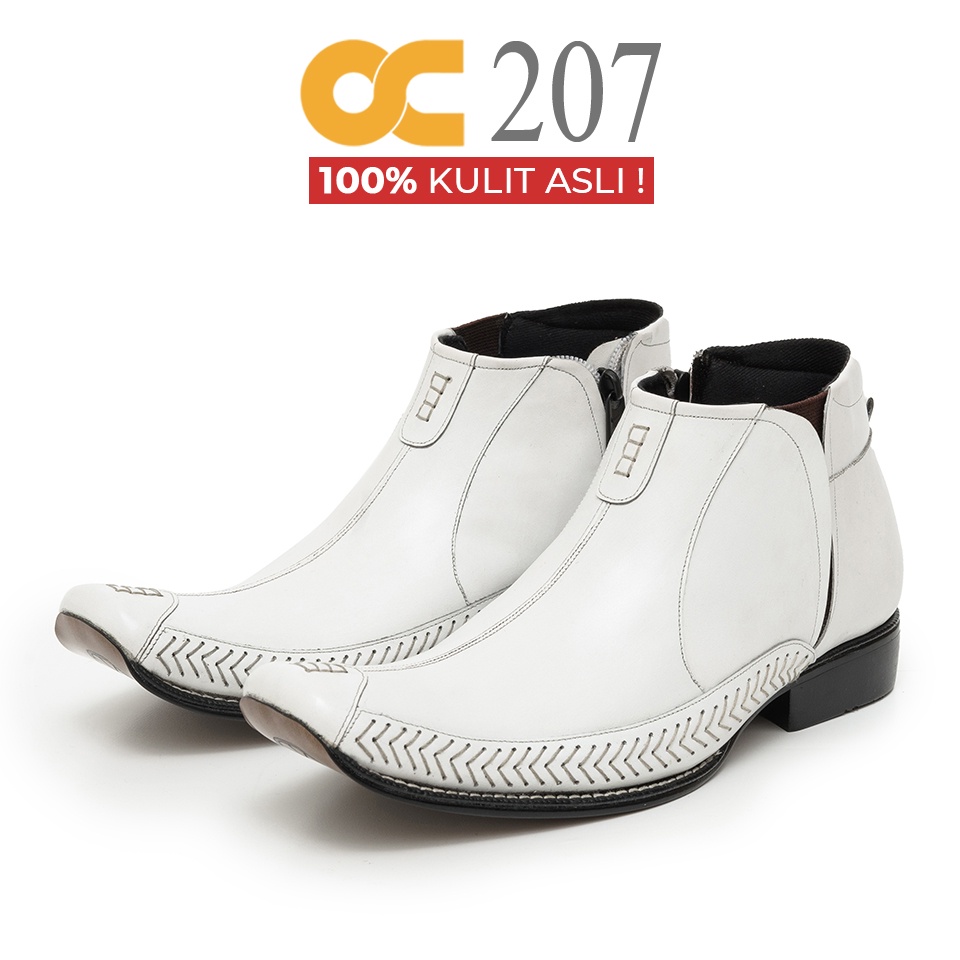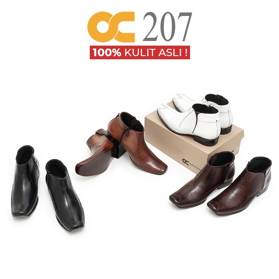 Sepatu Boot Pria Kulit Asli Odon Cibaduyut OC 207 Hitam Coklat Putih Kekinian Pantofel New Casual