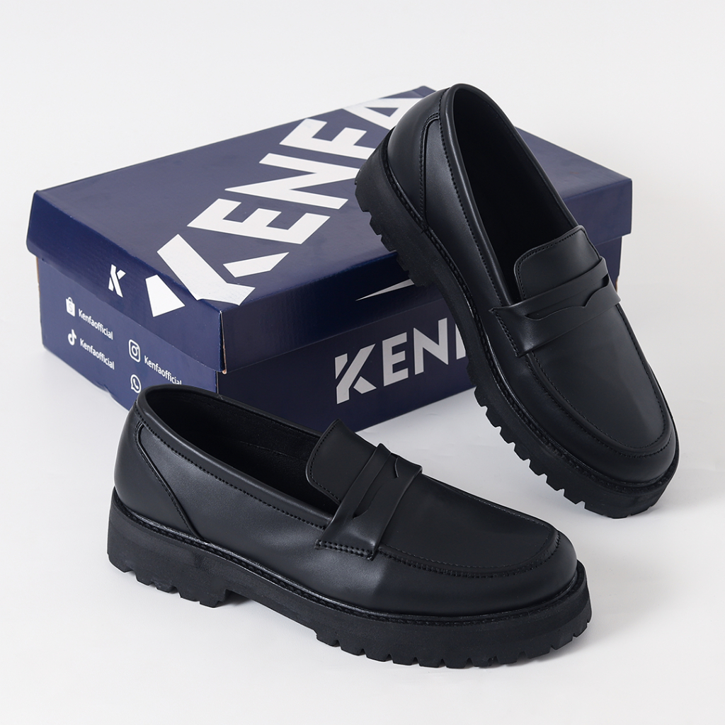 Kenfa - Mora Black Sepatu Pria Loafer Formal Kerja Kantor Kuliah Slip On Basic Hitam Tinggi Simple