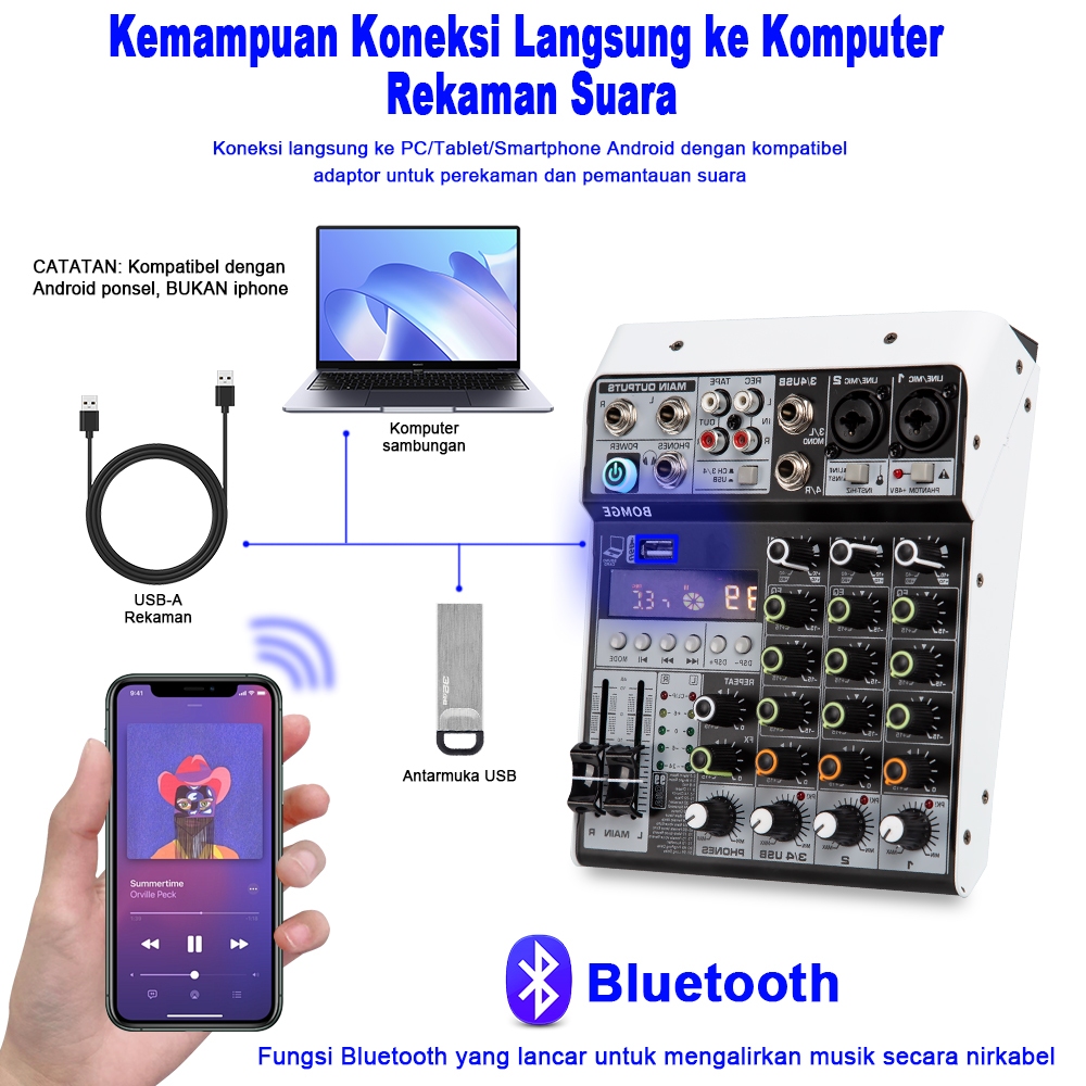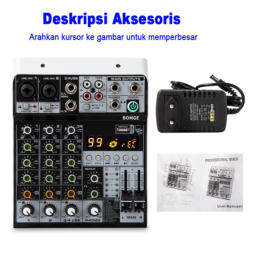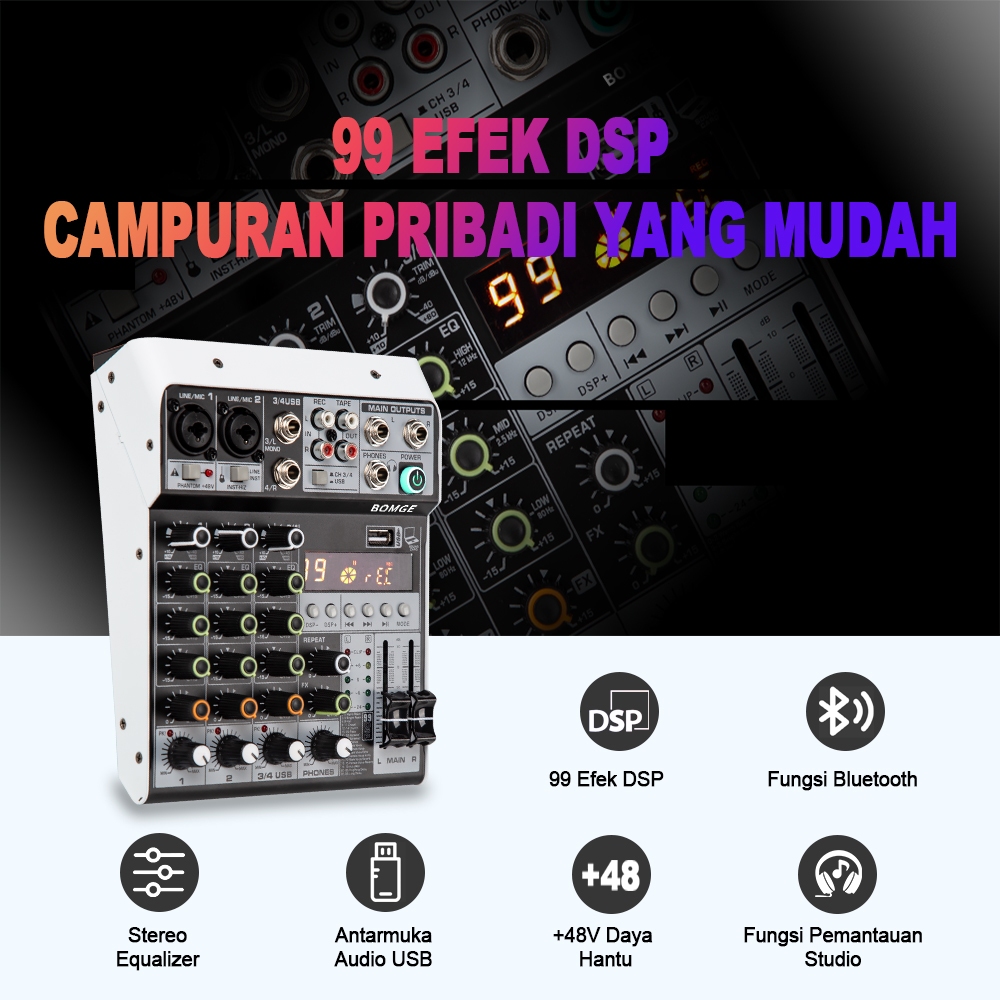 NEW ORIGINAL BOMGE KM416 4 Channel Audio Mixer, 99-Bit DSP USB Interface Effects+48V Phantom Bluetooth KM 416