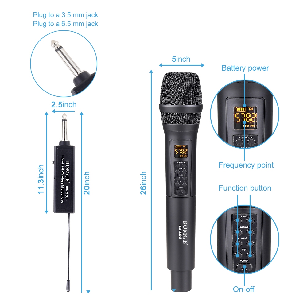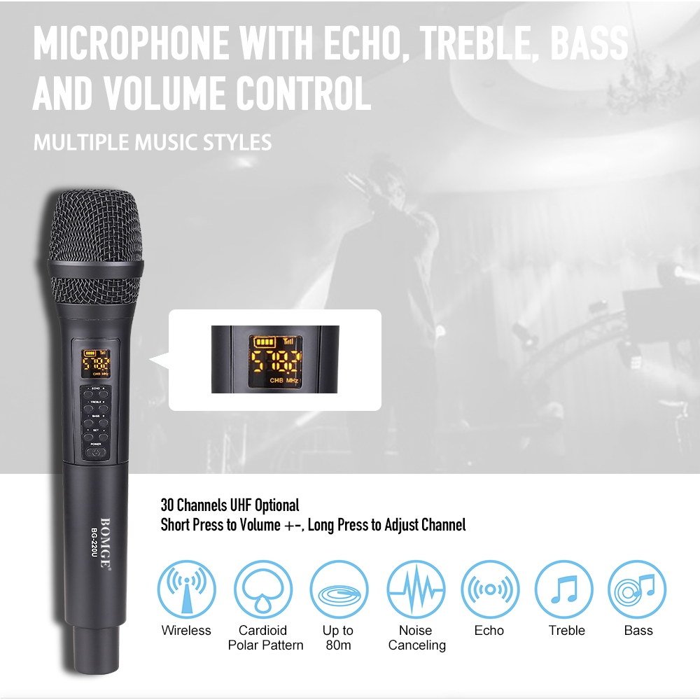 NEW ORIGINAL BOMGE 220UA Wireless Microphone Dual UHF Dual Handheld Dynamic Wireless Mic for Karaoke 220 UA