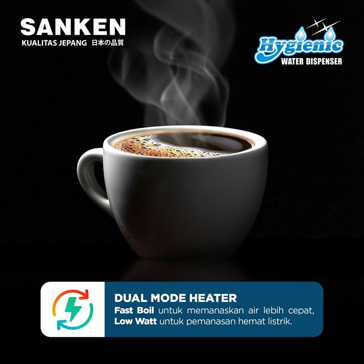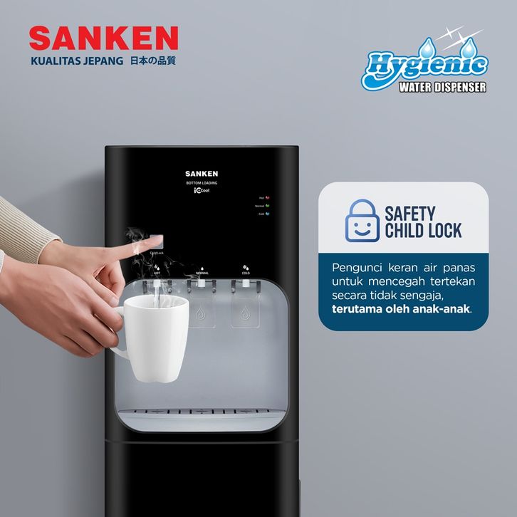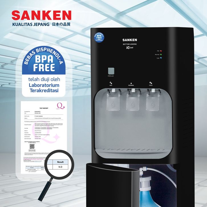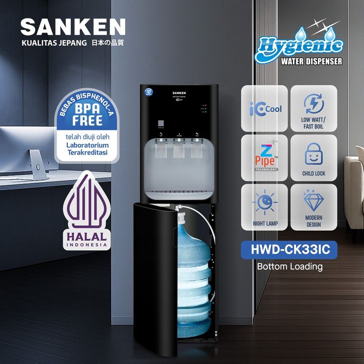 Dispenser Sanken Galon Bawah HWD-K33IC-BK Dispenser Standing 3 Keran Dispenser Air Bottom Loading BPA FREE